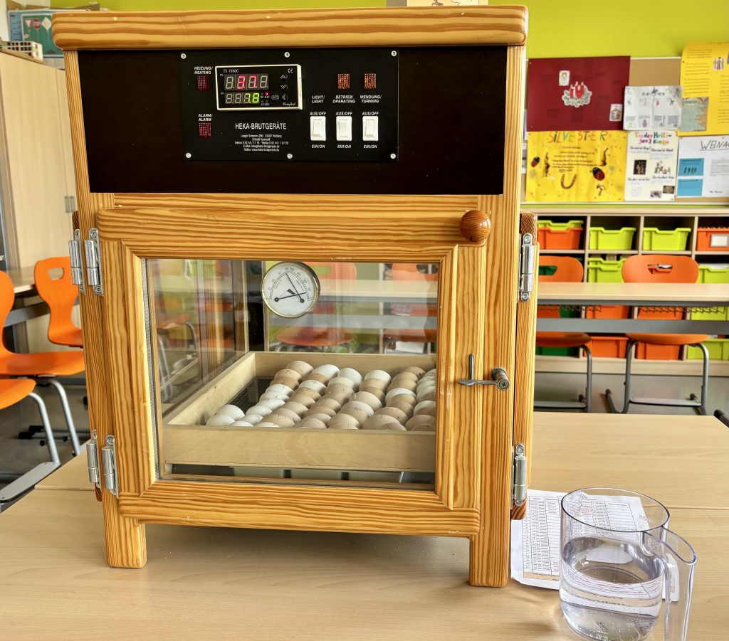 Jedes Kind aus der Klassenstufe 2 durfte ein Ei in die „Künstliche Glucke“ legen.